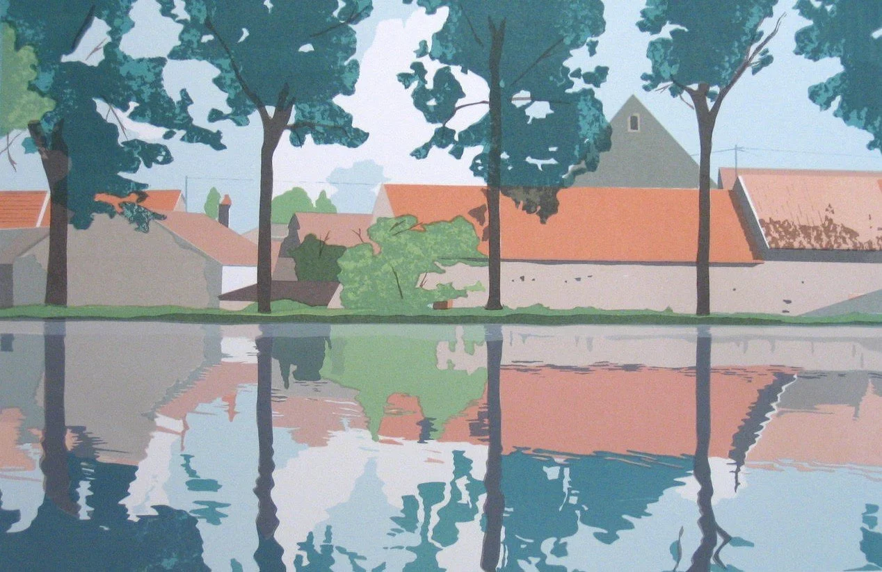 These artworks are serigraphs, or silkscreen prints, hand-printed by the artist using hand-cut lacquer film stencils. The inks are mixed with a large amount of transparent base, allowing for the visual "blending" of overlaid tones, creating an effect like that of well-controlled watercolors. The editions are very limited in number, with an average of about 50 or 60 impressions.