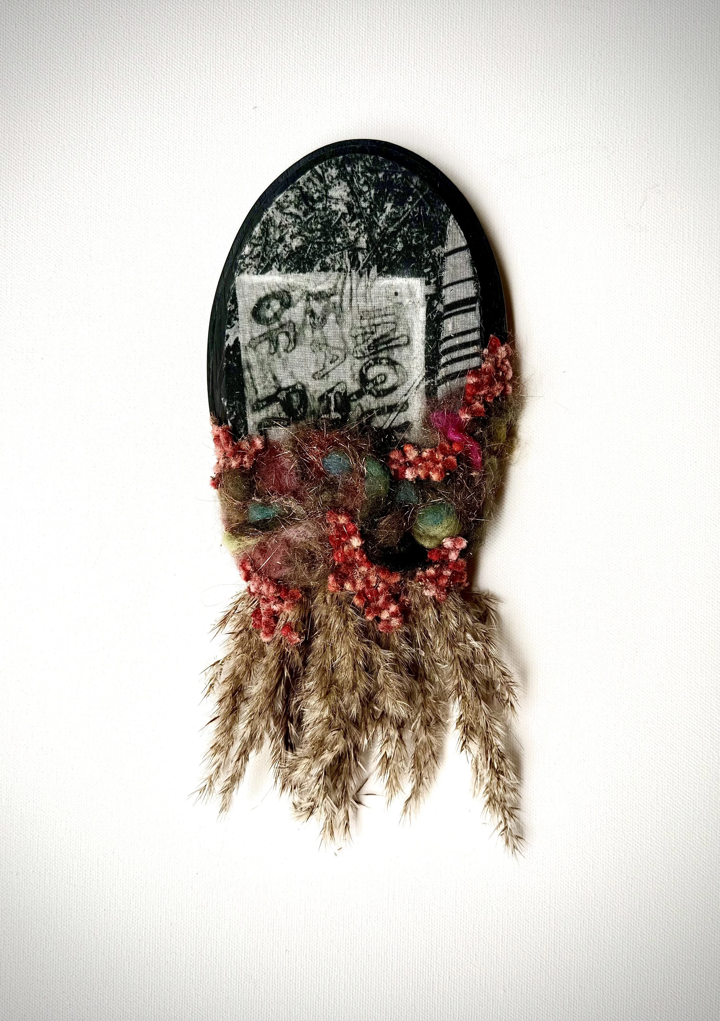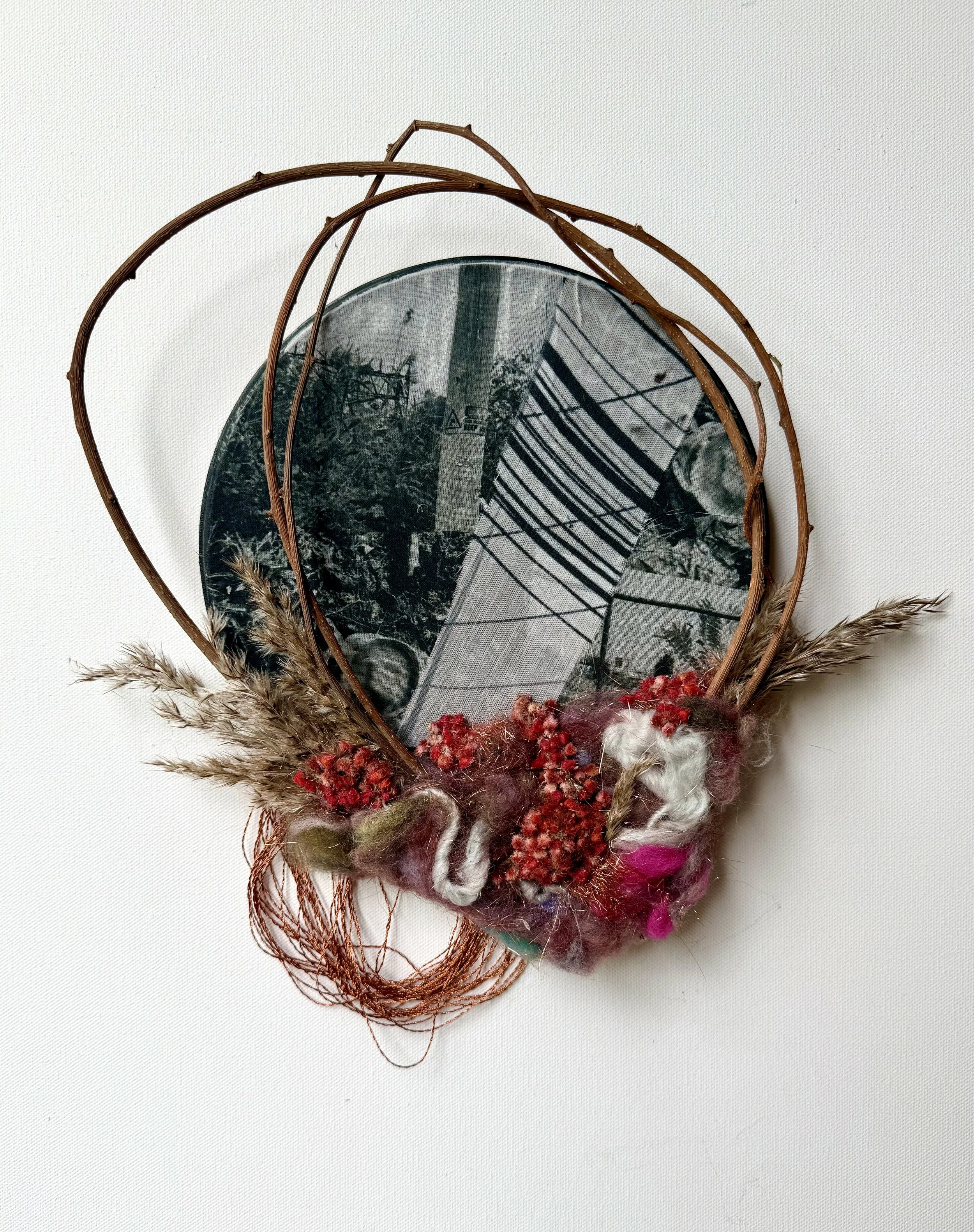 In my artistic practice, I not only observe these plants in their natural habitat but actively engage with them, forming a personal connection that extends to my sense of home and belonging. After harvesting, I begin the intricate process of weaving, bundling, and needle felting, incorporating various species within felt, yarn and copper filaments. This incorporation serves as a reminder of the interconnectedness of all living beings and the importance of seeking understanding before passing judgment. I also keep larger pieces of the plant intact so viewers can easily identify them as members of their own community. The sculptures that emerge are lavish, harmonious forms which counteract and balance the lens through which these plants are seen.