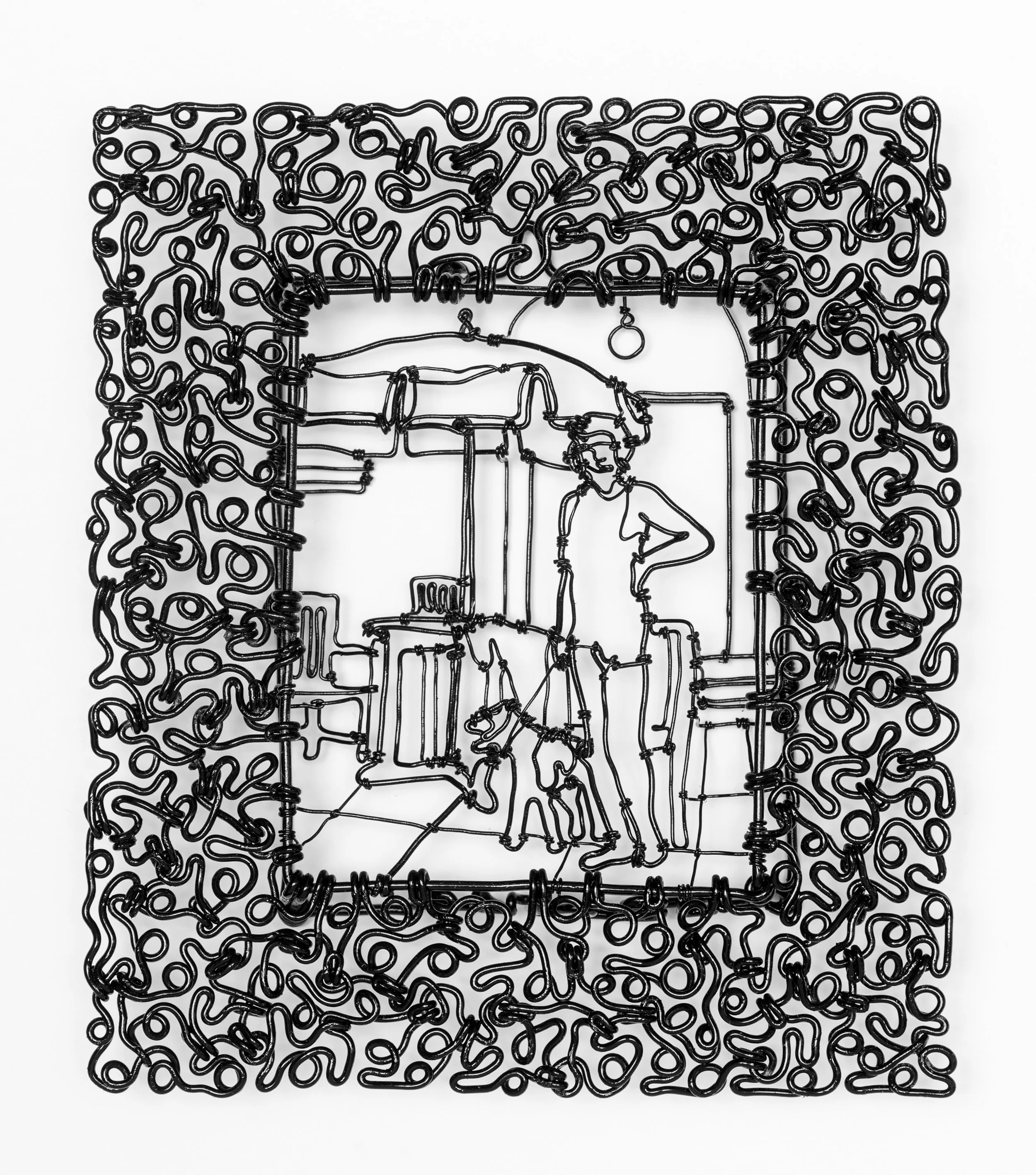 CW Roelle has been drawing with wire since the mid ‘90s. He first took up the pliers when the pencil line felt too removed. While attending The Maryland Institute College of Art he made his first wire pieces based on figure models from life drawing classes. He now makes a variety of images from small object portraits to interweaving narratives commenting on the delightful and mundane world around us. Roelle’s work is in the collections of The Newport Art Museum, Fidelity Investments and Women & Infants Hospital of Rhode Island. He lives and works in western Rhode Island.