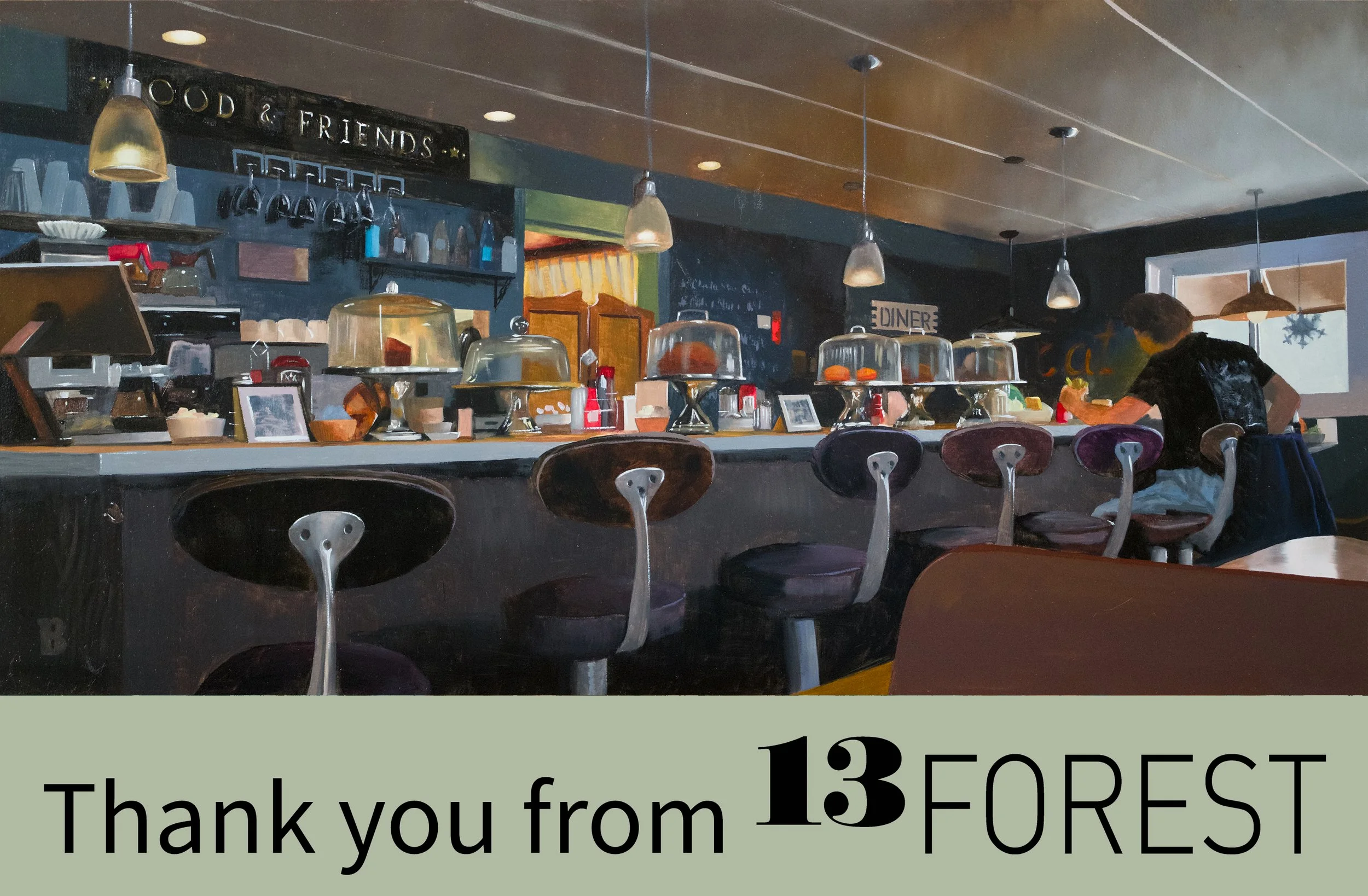 We appreciate your continued support of 13FOREST Gallery and the local artists we represent. That's why if you spend $300 or more with us during any calendar year, you'll be automatically enrolled in our Thank You Program.